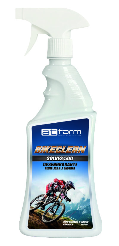 Es un desengrasante a base de un solvente biodegradable que elimina/remueve rápida y fácilmente la grasa, aceite, suciedad, mugre de las partes y piezas de la bicicleta como piñones, suspensiones, platos, cadenas, frenos, aros y cuadros.